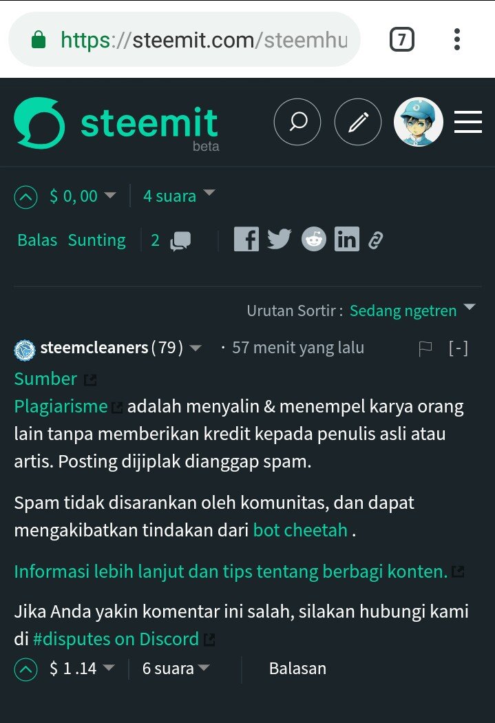 Tiba-tiba datang steemcleaners tanpa pemberitahuan langsung memberikan downvote 70% mengakibatkan akun saya langsung drop. Padahal banyak kejadian serupa terjadi bagi pemburu di steemhunt, tetapi tidak pernah datang steemcleaner dan sebelumnya saya juga mengalami hal yang sama, tetapi sekarang kok malah hancur dan kesannya dihancurkan ya?