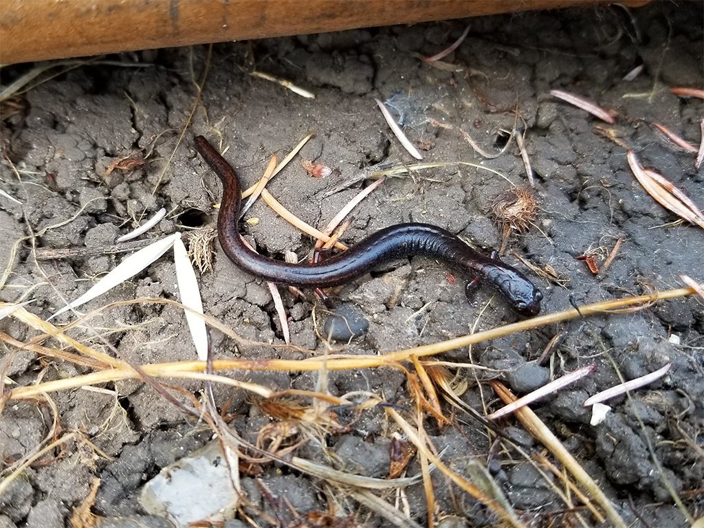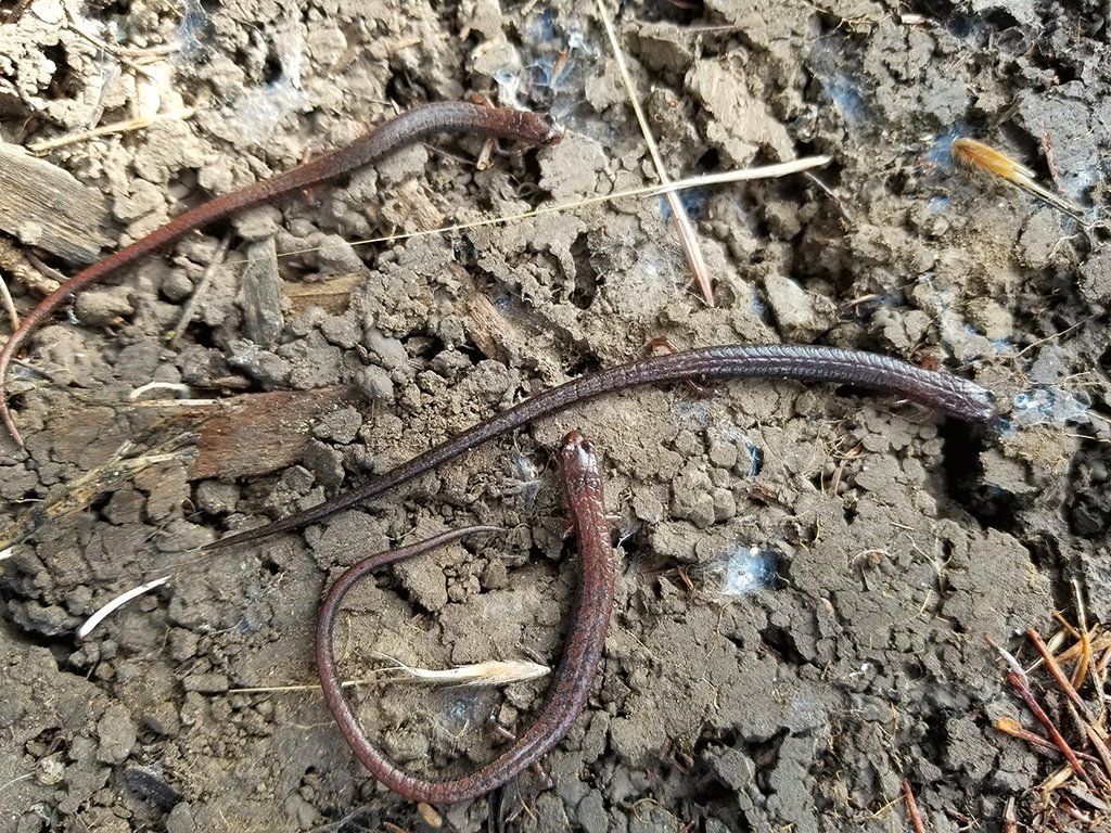 After a while I got back to poking around for salamanders. The kind of salamanders we have in our backyard are California slender salamanders, Batrachoceps attenuatuss. I was excited to learn about them in my California plants and animals class last winter, as I only knew what they were called and nothing else.
