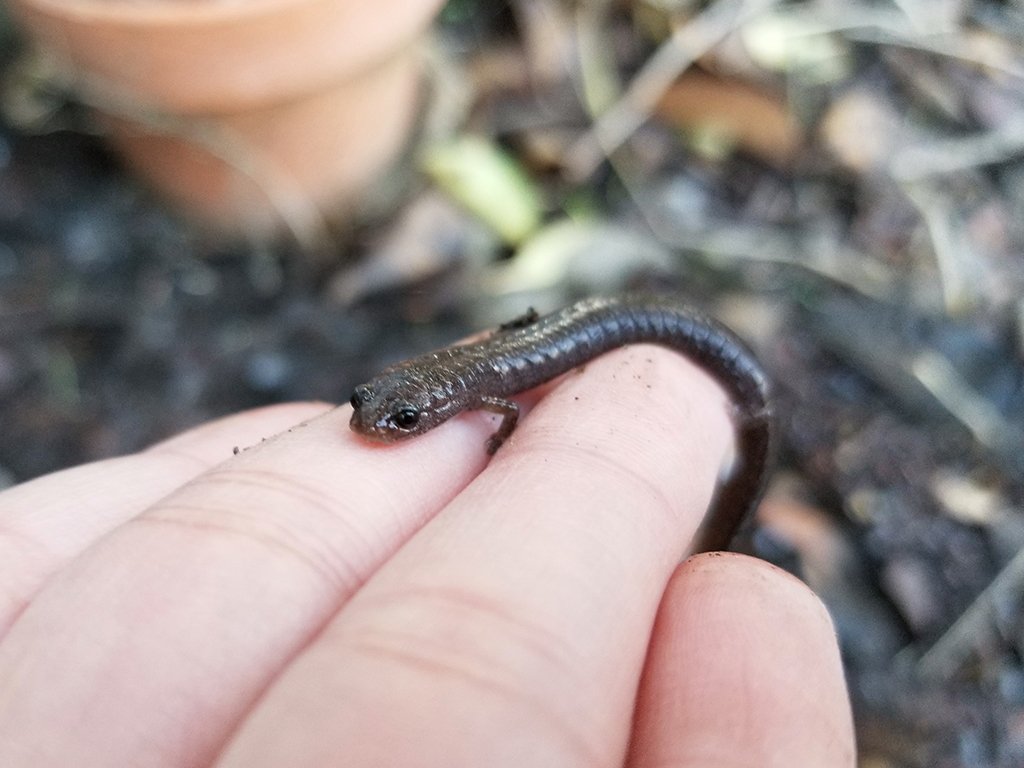 *verrrry smol*Members of plethodontidae also have a nasolabial groove on their face that help them pick up chemical scents of other salamanders. Unfortunately my phone does not have the ability to focus quite that close on such a tiny creature. If it did, I would have also taken macro shots of the TINY LIMBS and TEENSY TOES of the slender salamander. They are so adorable.