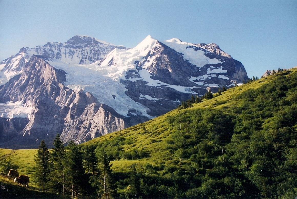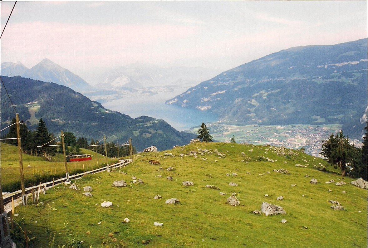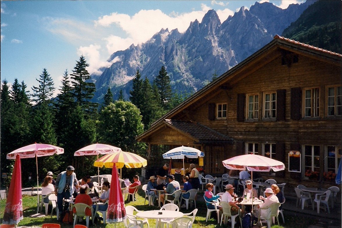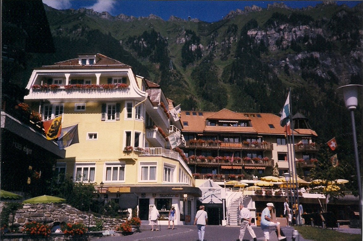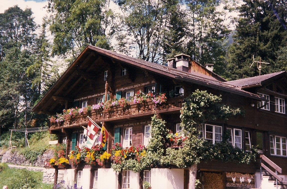 I have been to Switzerland three times, and most of that time was spent up in the Lauterbrunen Valley and vicinity, near Interlaken. Nowhere else in the world can you see such breathtaking beauty, and rural mountain life in these parts is so picturesque it seems like it must have come from a story book. Neatly stacked wood surrounds every little cottage. Beautiful flowers bloom in window boxes. While hiking in the mountains it is not at all unusual to be passed by an elderly couple, strolling by with ease at high altitude and up steep trails. In the town we always visit, Wengen, there are no cars, and no way up there except by a cog train. Cable cars, funicular, and trains that are propelled up steep mountains by cogs are the most common means of transportation.