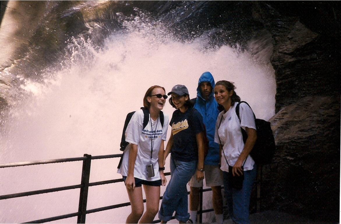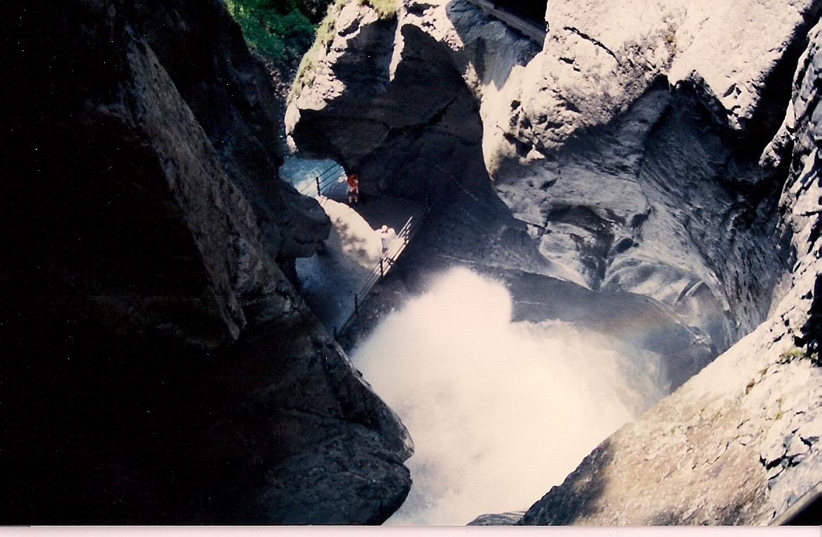 Trummelbach Falls, where a big river winds its way through tunnels in a mountain, with at least ten spectacular drops, corkscrewing their way down through the passages.