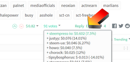 pet.society(25)•in #cn•2133 days ago使用Steempress大約可以獲得多少點贊收入以我們測試所知,Steempress 是使用該博主最初的5-10帖來判斷之後的點贊比例。定好點贊等級後,很少會作出改變。唯一是當日若果較少人發帖,Steempress 便會所有用戶提升比例。 我有一個戶口是最低級的3.5%,因為初初不太懂得掌握這一個機制,故此繼續發水文。只而獲得最差的等級。我這一個戶口,現時基本已不再...6pet.society(25)•in cn•2133 days ago使用Steempress大約可以獲得多少點贊收入以我們測試所知,Steempress 是使用該博主最初的5-10帖來判斷之後的點贊比例。定好點贊等級後,很少會作出改變。唯一是當日若果較少人發帖,Steempress 便會所有用戶提升比例。 我有一個戶口是最低級的3.5%,因為初初不太懂得掌握這一個機制,故此繼續發水文。只而獲得最差的等級。我這一個戶口,現時基本已不再...6