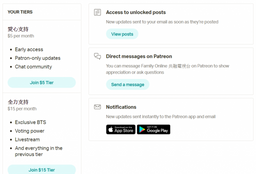 pet.society(25)•in #cn•2138 days ago學習使用 Patreon這一週在學習使用Patreon,整個過程不斷表示相當欣賞。在社交平台,一直是越開放越好。但Patreon 卻不一樣,卻是越內聚越隱閉越好。創作人與一班 Patreon 支持者,可以設定不同的每月支持金額。越內聚,支持的人每月便越願意付更高的錢。 整個過程,讓我對內容平台完全改觀。從以往很介意向人說收費,改觀為可以主動向...3pet.society(25)•in cn•2138 days ago學習使用 Patreon這一週在學習使用Patreon,整個過程不斷表示相當欣賞。在社交平台,一直是越開放越好。但Patreon 卻不一樣,卻是越內聚越隱閉越好。創作人與一班 Patreon 支持者,可以設定不同的每月支持金額。越內聚,支持的人每月便越願意付更高的錢。 整個過程,讓我對內容平台完全改觀。從以往很介意向人說收費,改觀為可以主動向...3