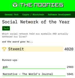 klye(25)•in #steem•2339 days agoSteemit Won the Noonies - Social Network of the Year( A screencap from hackernoon.com showing us winning the "Noonies" ) Good news everyone! Seems...105klye(25)•in steem•2339 days agoSteemit Won the Noonies - Social Network of the Year( A screencap from hackernoon.com showing us winning the "Noonies" ) Good news everyone! Seems...105