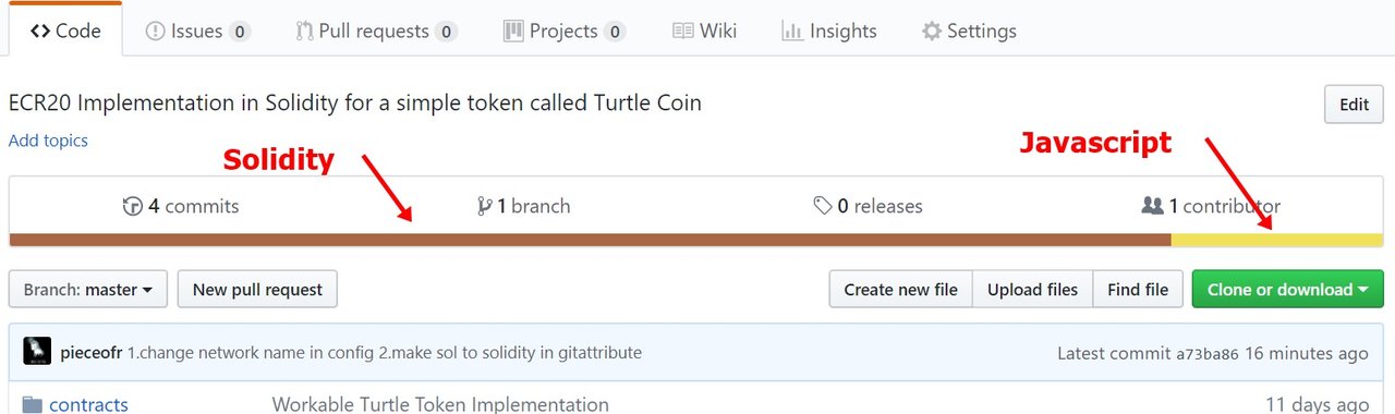 假如你使用 Truffle 開發 smart contract, 那麼 上傳 Github 後你就會發現你的 project是被歸類為 javascript. 這是為什麼呢 ? 這是因為 solidity 的檔名就是 .sol。這個 github 不會認為他是 solidity。 github 使用 linguist 這個套件偵測語言。 簡單的說 linguist 這個套件認為 sol 這副檔名太通用所以不會認定他是 solidity。 詳情可以看 solidity 上的 issue討論。