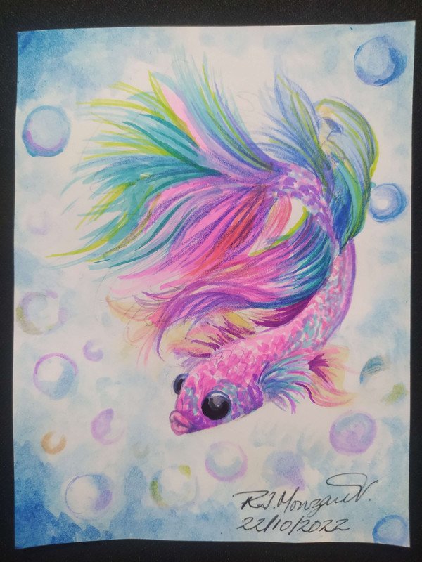 To be honest, I was afraid to add the water near the fins because I didn't want to lose the details, I am painting bubbles for the first time and it is something I would like to continue developing.