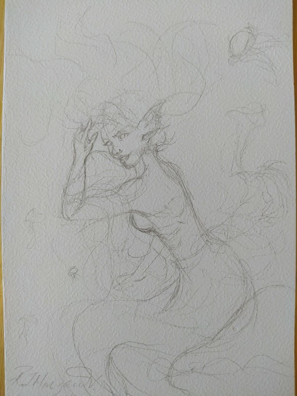 For the sketch, I searched Pinterest for references of underwater photos; I wanted to get a better idea of the movement of the hair, the shades and possible environment.