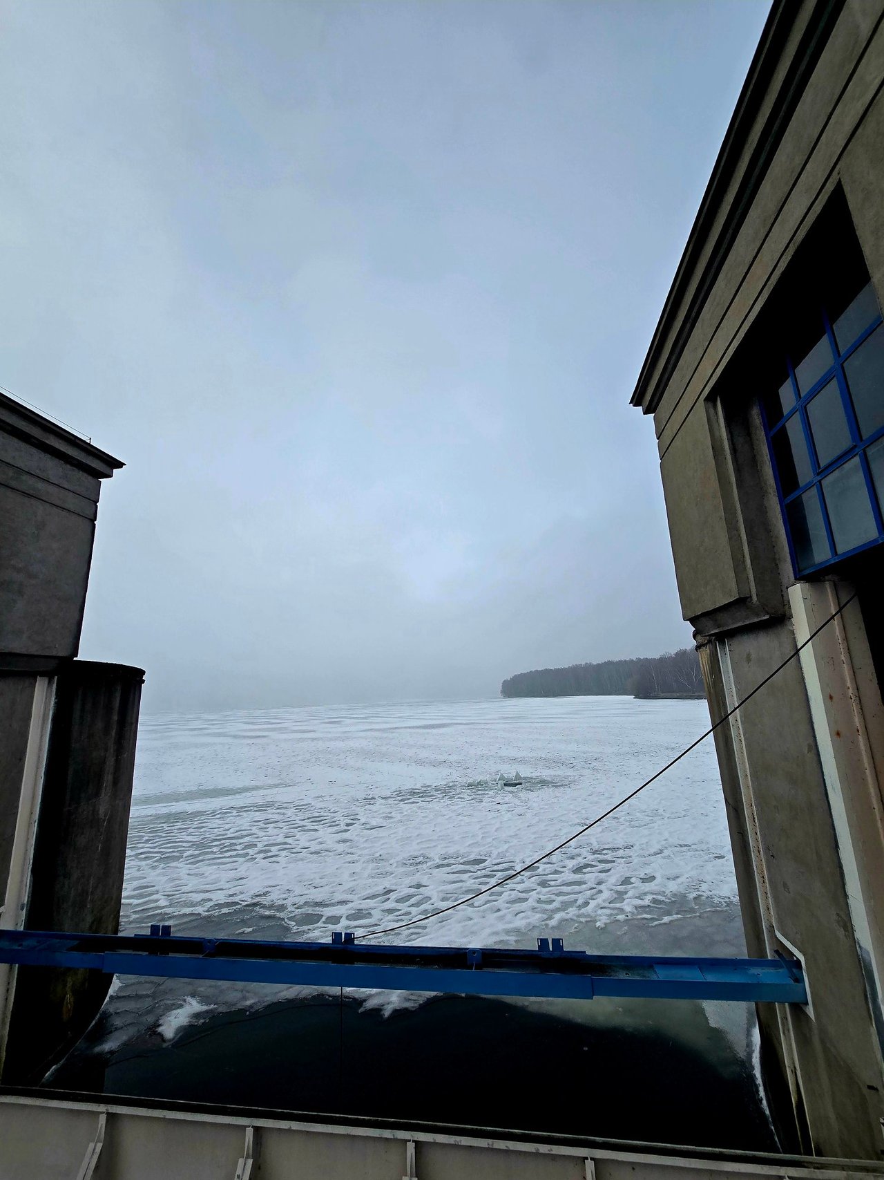 After about 7.5 km of fighting ice in the forest, I finally reach the Goczałkowice dam. Around 1.5 km left to the end of the dam and it’s time to turn back. The lack of ice was a huge relief — running on asphalt felt like a welcome break after the forest “figure skating on ice.” The downside was the wind, which on the open stretch hit hard and was a clear reminder that it’s still the middle of winter.