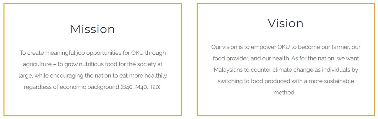 PWD Smart Farmability is a social enterprise recognized by the Malaysian Global Innovation & Creativity Centre (MaGIC). Our purpose of existence is to empower Malaysia’s disabled community (OKU) through urban farming – by making nutritious food and meaningful jobs available to them. Our ultimate goal is to help the disabled community acquire sought-after skills that will allow them to become part of the workforce, or as entrepreneurs. Through our efforts, we hope that the disabled community may inherit the knowledge and entrepreneurship skills to become self-sustainable and contribute to society with dignity.