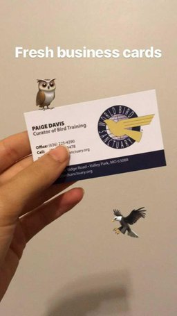 pythonpaige(25)•in #introduceyourself•3094 days agoFinally got my business card!Yeah. Yeah. Yeah. >I'm Paige Davis, bird training curator at World Bird Sanctuary, M.O. and here is my brand new business card. How's it guys? My friend, Trupti...65$0.01pythonpaige(25)•in introduceyourself•3094 days agoFinally got my business card!Yeah. Yeah. Yeah. >I'm Paige Davis, bird training curator at World Bird Sanctuary, M.O. and here is my brand new business card. How's it guys? My friend, Trupti...65$0.01