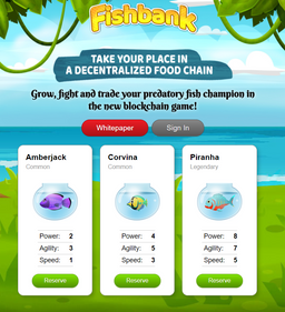 quickfingersluc(25)•in #trading•2937 days agoA new Game is coming out similar to CryptoKitties.. This time you could be first inSo there is a new blockchain game out called Fishbank. Its like CryptoKitties except its fish and there will be battles. Here is a link to the whitepaper: https...62quickfingersluc(25)•in trading•2937 days agoA new Game is coming out similar to CryptoKitties.. This time you could be first inSo there is a new blockchain game out called Fishbank. Its like CryptoKitties except its fish and there will be battles. Here is a link to the whitepaper: https...62