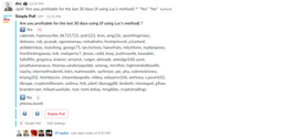 quickfingersluc(25)•in #trading•3022 days agoYesterday's Poll: "Are you profitable for the last 30 days (if using Luc's method) ?" "Yes" "No"Yesterday afternoon @doc started a poll in our slack "Are you profitable for the last 30 days (if using Luc's method) ?" "Yes" "No" Thanks @doc for doing this, ...64quickfingersluc(25)•in trading•3022 days agoYesterday's Poll: "Are you profitable for the last 30 days (if using Luc's method) ?" "Yes" "No"Yesterday afternoon @doc started a poll in our slack "Are you profitable for the last 30 days (if using Luc's method) ?" "Yes" "No" Thanks @doc for doing this, ...64