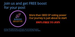 rakoo(25)•in #steemit•2686 days agoJoining RAKOOBOOSTER is still open, we are looking for good authors, professional photographers, and productive membersDear steemit friends, I hope all of you are doing fine with steemit so far, I have learned a couple of things in steem platforms through the last year since I j...2rakoo(25)•in steemit•2686 days agoJoining RAKOOBOOSTER is still open, we are looking for good authors, professional photographers, and productive membersDear steemit friends, I hope all of you are doing fine with steemit so far, I have learned a couple of things in steem platforms through the last year since I j...2
