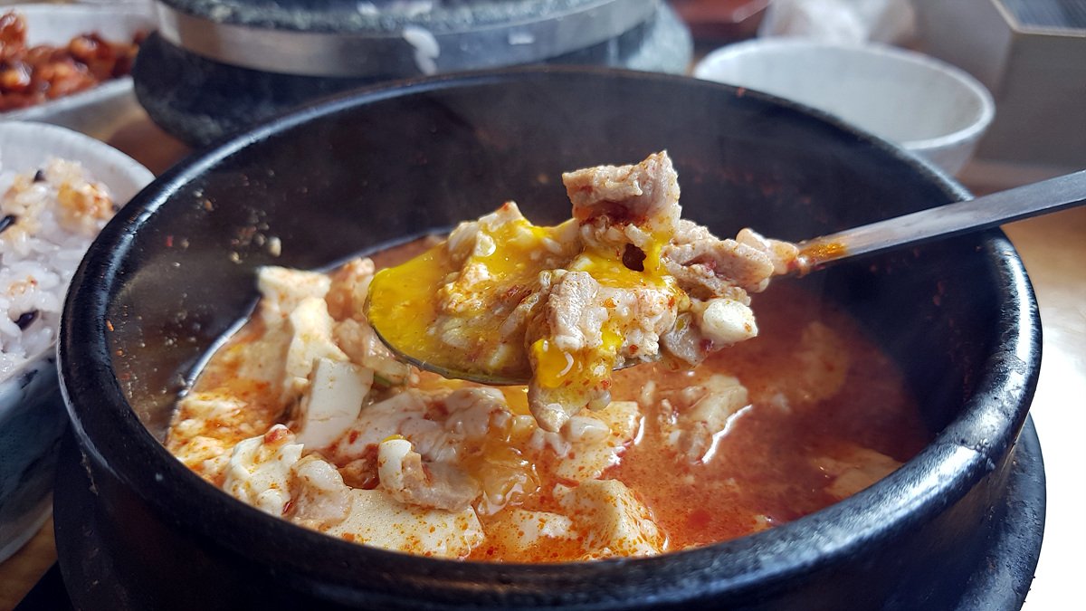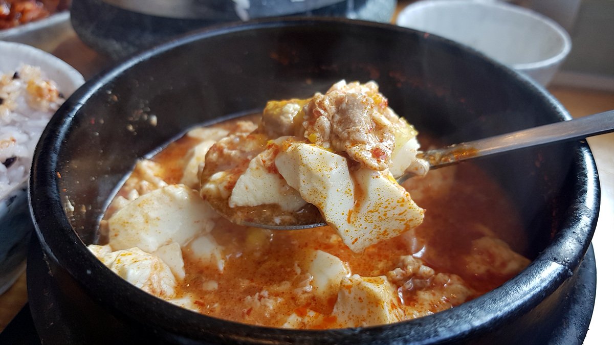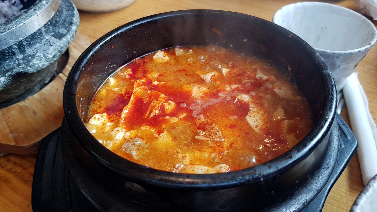 매콤한 순두부에 돌솥밥 먹으니