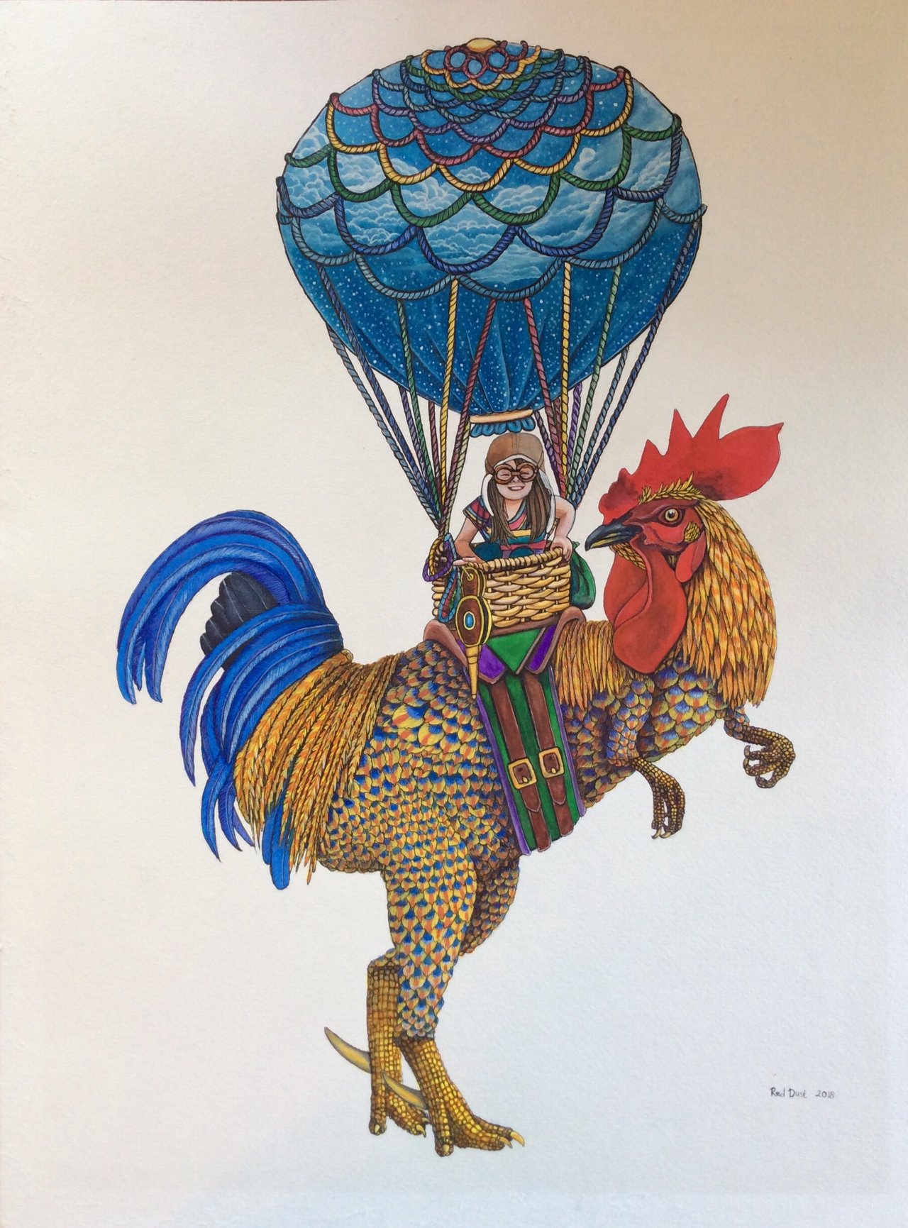 When I posted my finished drawing my commenters wanted the background to stay blank or add a blue sky with clouds. I decided to accommodate both choices. I put the blue sky and clouds inside the balloon and kept the background blank. Thank you all for your critiques and ideas, you all are part of this painting.