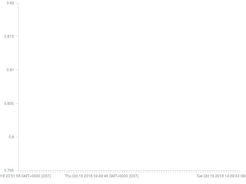 Daily low:0.8013562359037916 at Wed Oct 17 2018 00:12:39 GMT+0000 (DST)Daily high:0.8177873539342366 at Thu Oct 18 2018 19:57:51 GMT+0000 (DST)