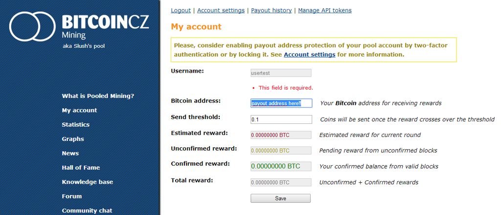 you'll need to enter your unique wallet address into the Bitcoin payout address.