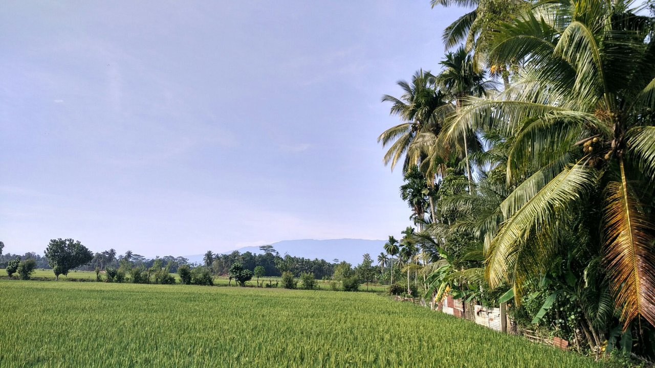 indahnya panorama alam pedesaan, hamparan padi yang menguning di kaki bukit dan sejuknya udara