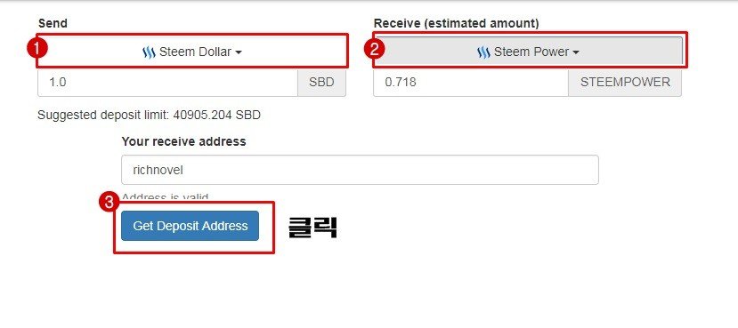 Receive창에는 스팀파워를 선택한 뒤에