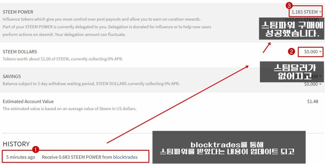 돈으로 스팀코인을 구매해서 파워를 환전하는 것도 해봐야겠습니다.