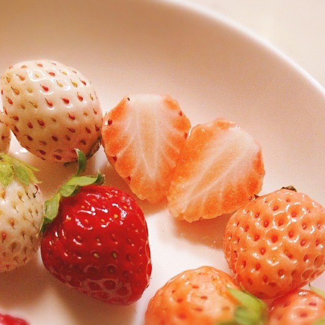 このまま食べるよりも、切ってみて良かった。切ったほうがさらに可愛い。特にまっ白のイチゴをカットしたやつなんて、お菓子作りしてる人なら何か良いアレンジできそうな気がする。