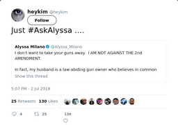 alyssa.milano(25)•in #tweet•2762 days agoRT @heykim: Just #AskAlyssa ....Tue Jul 03 00:09:22 +0000 2018 @alyssa.milano tweeted.RT @heykim: Just AskAlyssa .... https://t.co/YJ2WnHiOnghttps://twitter.com/alyssamilano/status/10139377094...10$0.00alyssa.milano(25)•in tweet•2762 days agoRT @heykim: Just #AskAlyssa ....Tue Jul 03 00:09:22 +0000 2018 @alyssa.milano tweeted.RT @heykim: Just AskAlyssa .... https://t.co/YJ2WnHiOnghttps://twitter.com/alyssamilano/status/10139377094...10$0.00