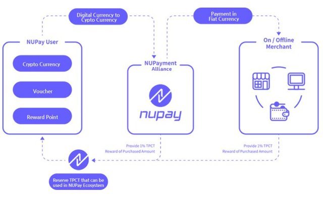 NUPay एक आसान विदेशी मुद्रा बिलिंग प्लेटफ़ॉर्म है। लाइन और मोबाइल और ऑफलाइन पर जुड़ने के लिए एक पासवर्ड-आधारित शुल्क गैजेट विकसित करना ताकि भविष्य के शुल्क रणनीतियों के रूप में उपयोग किए जाने वाले पासवर्ड भविष्य में निर्मित भुगतान बाजार में उपयोग किए जाने वाले और बिना कठिनाई के अतिरिक्त हो सकें, और मूल्य तकनीकों को सरल और अधिक बनाने के लिए । सेल वॉलेट और वास्तविक कार्ड के साथ शुरू होने पर, खरीदारों को ऑन-साइट / ऑफ-लाइन स्टोर में काफी संख्या में पासवर्ड की यात्रा करने का मौका मिलेगा, और ब्लॉक / चेन-आधारित पासवर्ड के माध्यम से अतिरिक्त राजस्व सृजन के साथ / ऑफलाइन स्टोर पर आपूर्ति की जाएगी। बिलिंग प्रणाली। TPCT, एक NUPay टोकन, विनिमय के कौशल पर लक्षित एक क्रिप्टोग्राफिक फॉरेक्स है, जो पारंपरिक मुद्रा का सार है, और इसे NUPay भुगतान प्रणाली के माध्यम से निपटाया और श्रेय दिया जा सकता है।