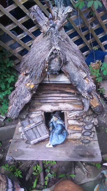 There are such fabulous characters as Baba Yaga and her hut on chicken legs. Look here, what an interesting house you can make from branches. Which will decorate your yard, in winter and summer. See for yourself. This house was made by my dad, he has such a hobby.