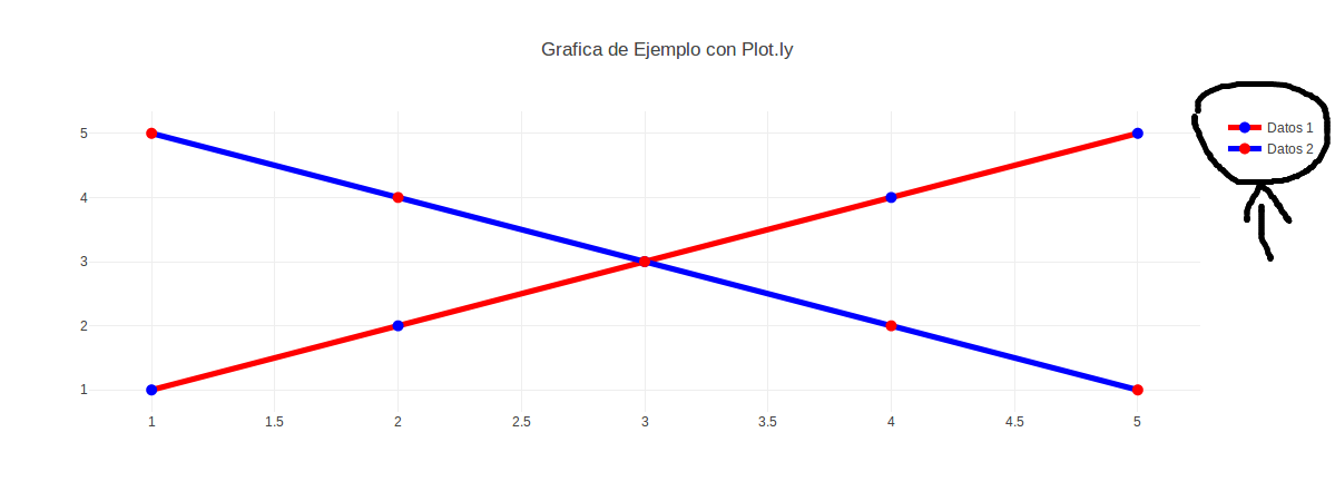 Entonces tenemos X y Y que son las variables a graficar, type que nos dice que la grafica son lineas sencillas, name que nos deja ver un tipo de leyenda en el grafico, esto es interesante ya que funciona como un filtro, line que nos especifica las características de la linea y marker que nos especifica las características de los puntos.