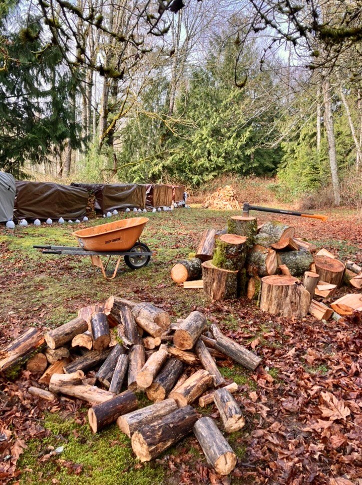 Take a look at my stack of hand split firewood off in the background! This is just the “Green firewood”, I have almost a full cord of cut and split and stacked, standing dead in my woodshed!😊