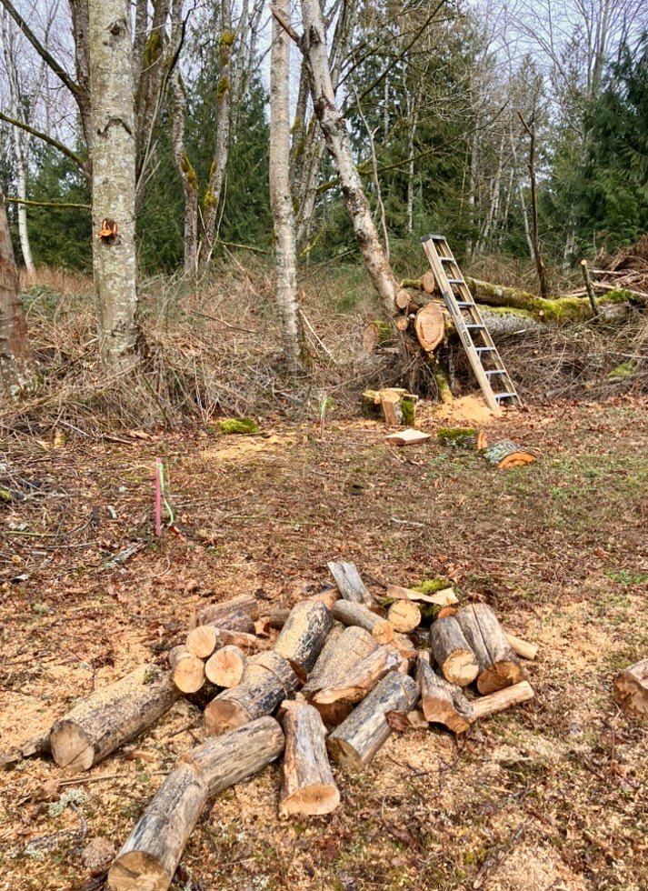 It’s been a very technical chainsawing experience, cutting my way through these fallen trees!🙄