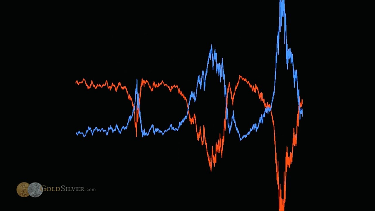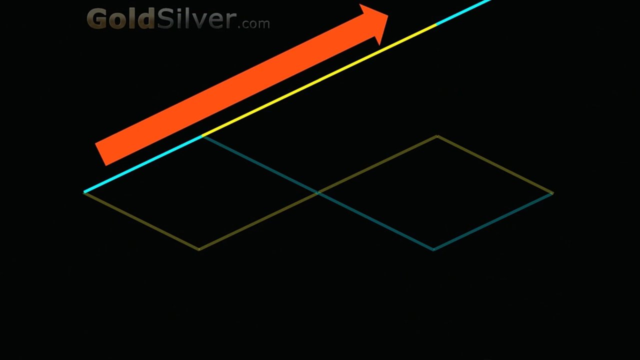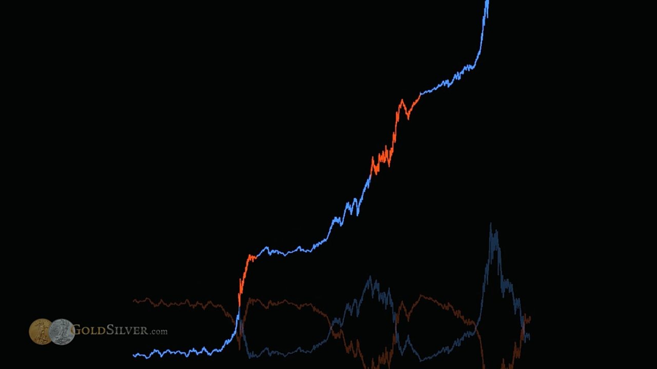 위 그래프와 앞의 Dow Gold ratio 그림을 합치면, 앞서 파란색과 노란색 자산 부의 사이클처럼, 다우와 금 사이클을 발견할 수 있다. 앞선 글에서의 그림은 이렇게 서로 대응한다. 이것을 Mike Maloney는 모든 자산이 이렇게 valuation channel에 갇혀 있다고 말한다.
