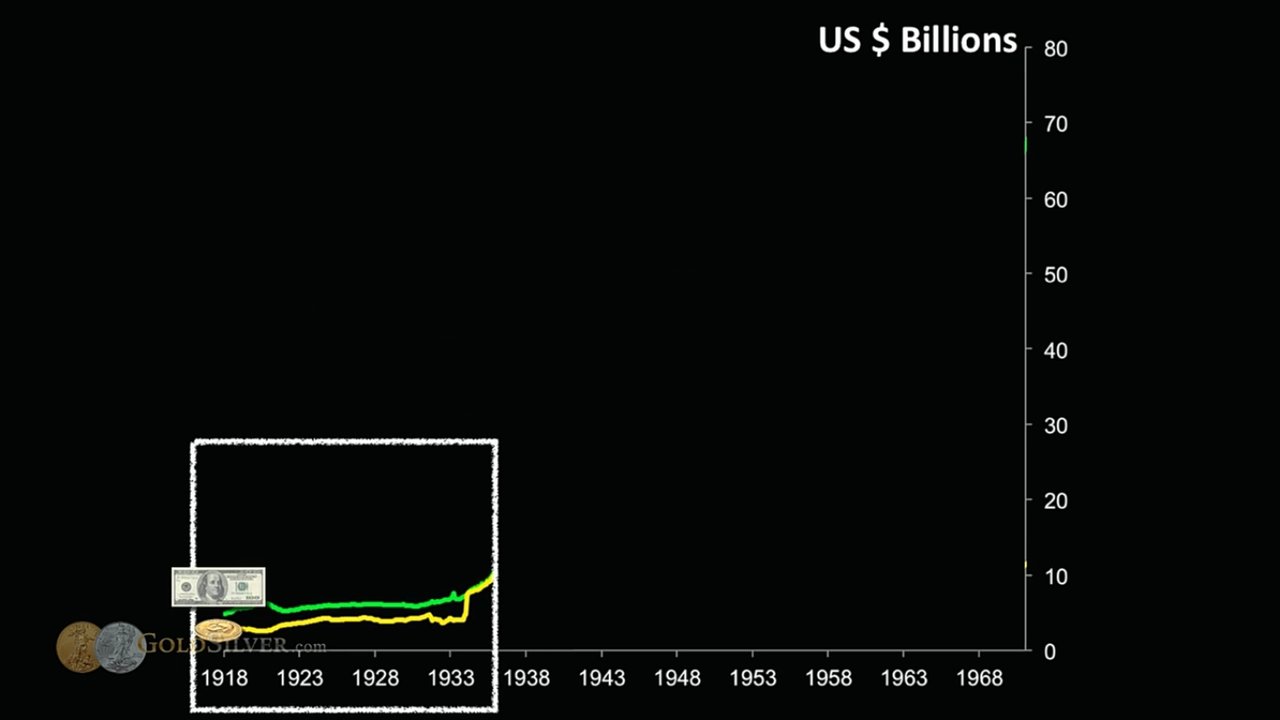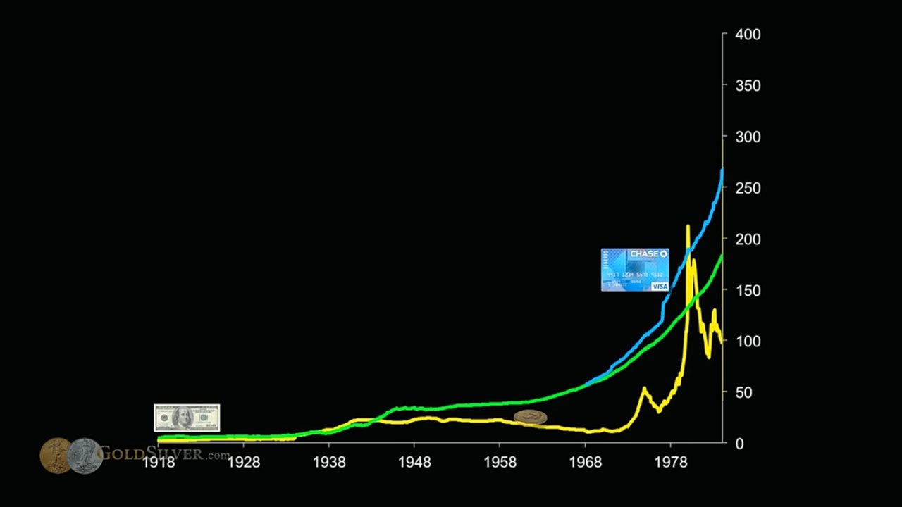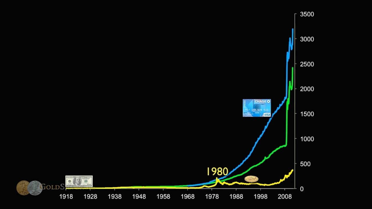 모든 것들의 가격과 숫자들이 상승하는 이유는 화폐를 찍어냈기 때문인 것이었다. 위를 살펴보면 화폐량이 1930년대 6~10에서 2010년에는 2000에 가까이 약 200배 증가한 것을 볼 수 있다. 다우지수가 저 시점을 기준으로 오늘까지 약 100~200배 가까이 증가한 것은 과연 우연일까?
