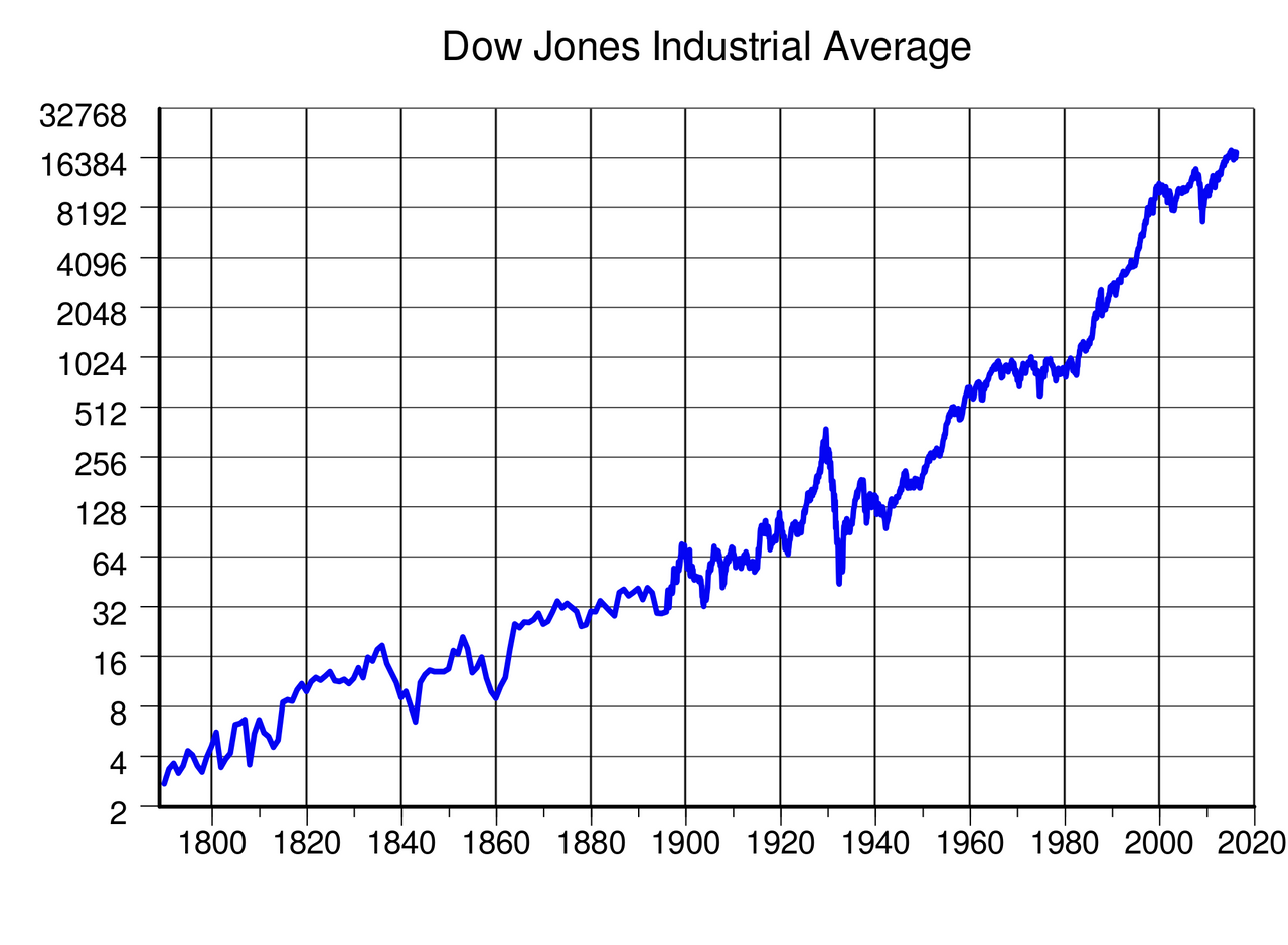 역사의 주가지수를 살펴보면 쉽게 발견할 수 있는 사실이 있다. 세계의 모든 주가지수가 기하급수적 성장(Exponential Growth)을 보이고 있다는 것을 말이다.