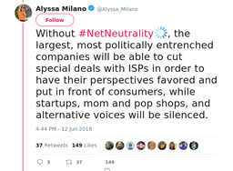 alyssa.milano(25)•in #tweet•2776 days agoWithout #NetNeutrality, the largest, most politically entrenched companies will be able to cut special deals with I…Tue Jun 12 23:44:28 +0000 2018 @alyssa.milano tweeted.Without NetNeutrality, the largest, most politically entrenched companies will be able to cut special deal...31$0.00alyssa.milano(25)•in tweet•2776 days agoWithout #NetNeutrality, the largest, most politically entrenched companies will be able to cut special deals with I…Tue Jun 12 23:44:28 +0000 2018 @alyssa.milano tweeted.Without NetNeutrality, the largest, most politically entrenched companies will be able to cut special deal...31$0.00