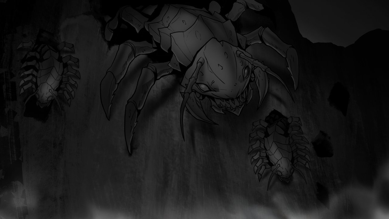 Delya flashed a white smile in response before another centipede erupted from a hole above them, biting onto Delya’s rope. It yanked upward, heaving the rope and its prey into its hole. Delya fired off another shot, but as her rope was thrashed from side to side, the arrow missed its mark. Gritting her teeth, she pulled out another arrow and took aim. The centipede clawed at the edges of its burrow, cracking the rock and sending debris down. Delya rolled out of the way and fired her arrow. It sunk through the centipede’s jaw just as a falling rock cracked her on the head. The archer’s body went limp, and she fell.