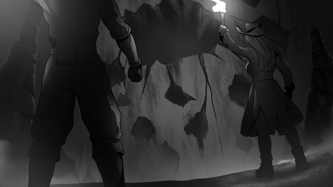 The group carried on, walking carefully along this new, natural path. Fiafia followed the line of lights, keeping her balance on the uneven ground. It did not take long before their lanterns brought into view a gaping hole in the canyon’s wall. It yawned open like a great, dark maw, burrowing deep into the rock. Swearing from some of the rangers accompanied this discovery.