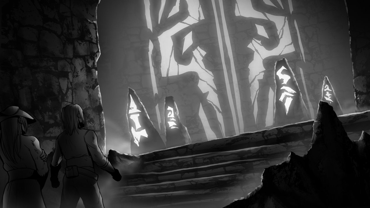 At the bottom of the Abyssal Canyon, far down from any sunlight or view of the sky, a set of ancient double doors were carved into the wall. Runes representing each of the elements bordered them, reflecting in all of their eyes.