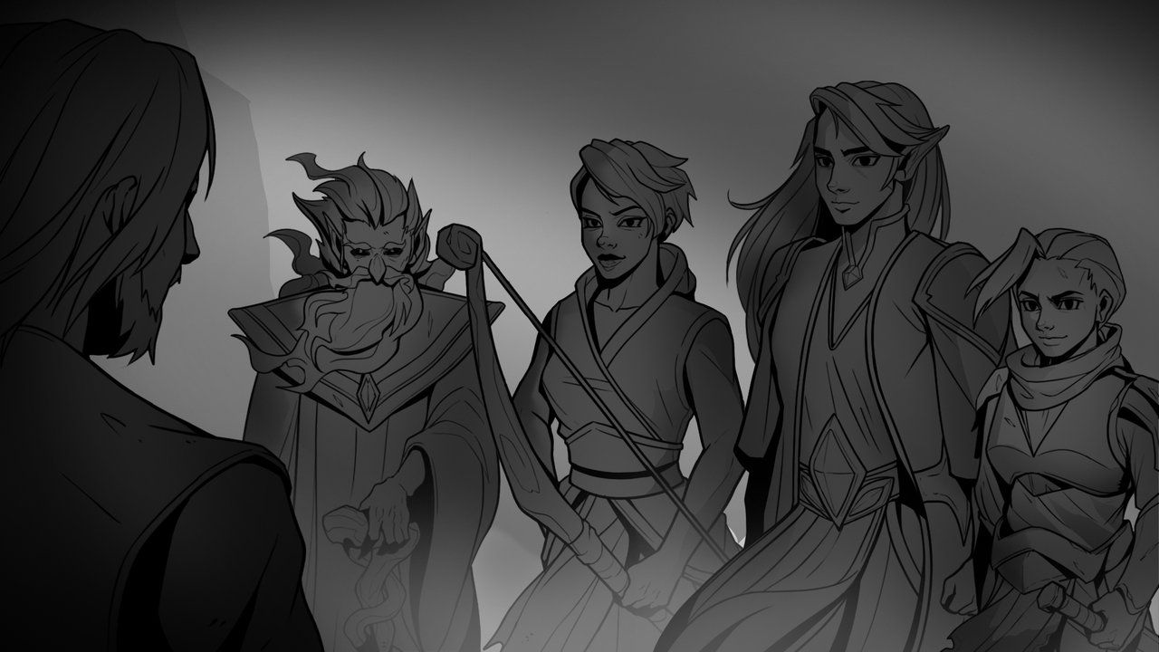 The two stayed where they were until the rest of the group descended, boots thudding against the rocky ground. Bera and River instantly ran to their sides. Joaken hung back a few feet, his fiery body illuminating their surroundings.