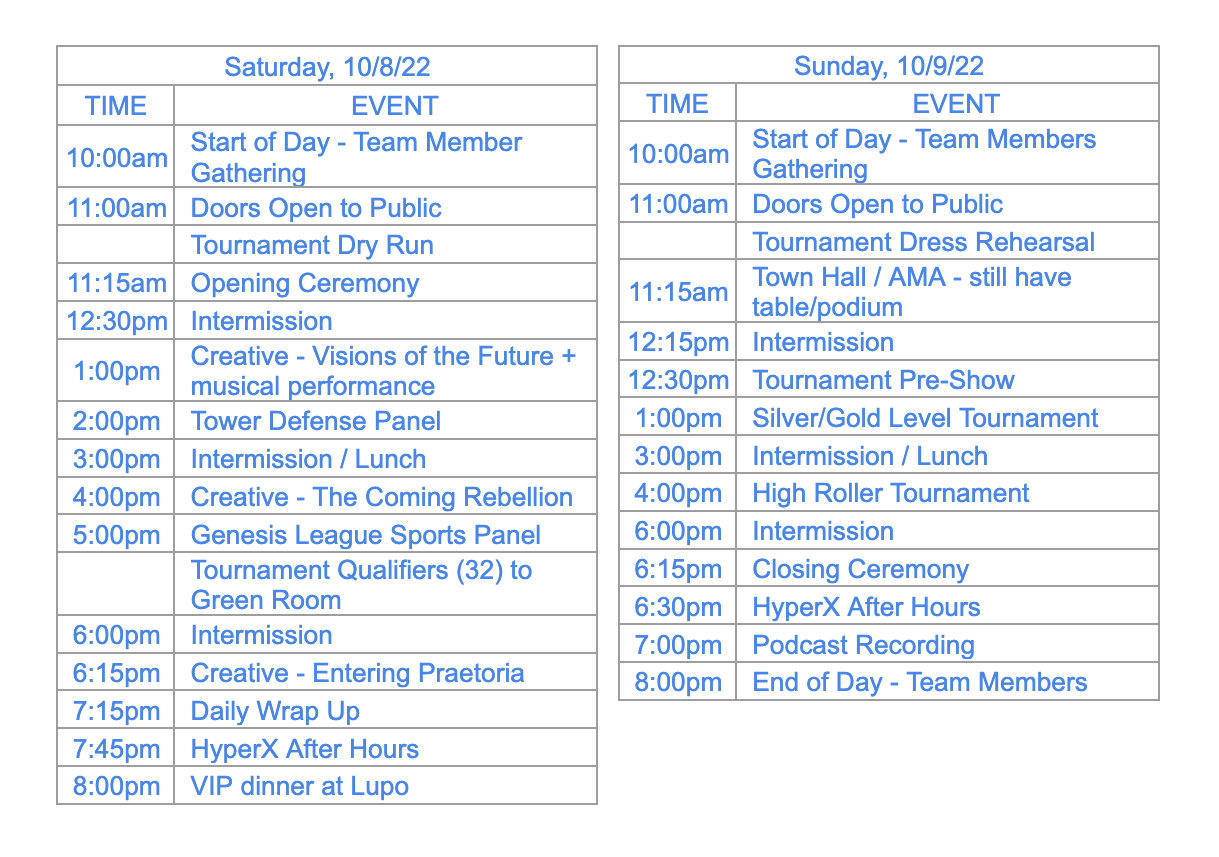 Our first-ever Splinterfest was hosted in HyperX arena at Luxor Resort and Casino, Las Vegas. Splinterfest utilized the 30,000 square-foot multi-level arena and production studio for tournaments, panels on current and upcoming projects, our first live audience AMA, VIP rooms and lounge areas, live podcast recording, and our first live esports video cast. The event was recorded for future release, with the esports tournament finals live-streamed on Twitch and Youtube.