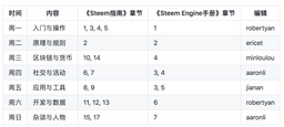 steem-guides(25)•in #cn•2388 days ago《Steem指南》专栏周刊:《入门与操作 》 2019-07-01《Steem指南》专栏周刊 从今天起,《Steem指南》每日将发布专栏周刊,介绍最新的专栏投稿与书籍更新。 下面是每日专栏,以及对应的《Steem指南》和《Steem Engine手册》的章节,和专栏责任编辑。 欢迎你订阅 @steem-guides 了解社区对每个专栏的最新分享与研究进展。 ...4steem-guides(25)•in cn•2388 days ago《Steem指南》专栏周刊:《入门与操作》 2019-07-01《Steem指南》专栏周刊 从今天起,《Steem指南》每日将发布专栏周刊,介绍最新的专栏投稿与书籍更新。 下面是每日专栏,以及对应的《Steem指南》和《Steem Engine手册》的章节,和专栏责任编辑。 欢迎你订阅 @steem-guides 了解社区对每个专栏的最新分享与研究进展。 ...4
