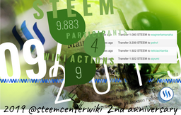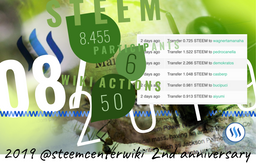 steemcenterwiki(25)•in #wiki•2316 days agoSTEEM tokens transfers for August's participants plus first donation, registered user and collaborators in SeptemberSteem.center : About | STEEM Rewards | Rules Hi steemians! Last week we announced the STEEM distribution list with Steem.center wiki collaborators in August and...4steemcenterwiki(25)•in wiki•2316 days agoSTEEM tokens transfers for August's participants plus first donation, registered user and collaborators in SeptemberSteem.center : About | STEEM Rewards | Rules Hi steemians! Last week we announced the STEEM distribution list with Steem.center wiki collaborators in August and...4