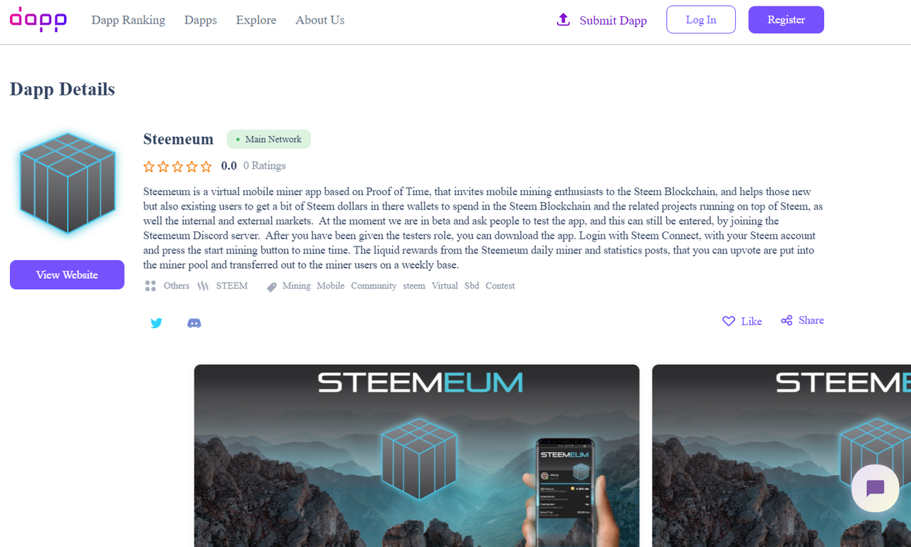 Recently the focus on (Steem) Dapps is becoming stronger and is one of the stronger points of the Steem Blockchain, and although Steemeum is still in a "closed" beta, we are also live and operational and therefore also made the step to add Steemeum to online platforms that list and rank (Steem) Dapps.
