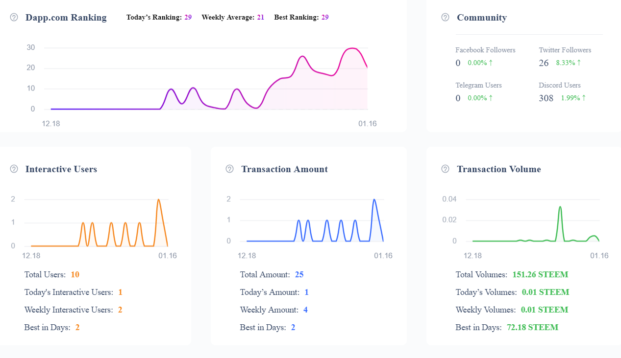 It is amazing to see that over 300 people have joined the Steemeum Discord, and wanting to test the app, on a daily base we have around 40 - 50 users using the app, and this week over 80 total users. New users join on a daily base and the user count is growing steady.