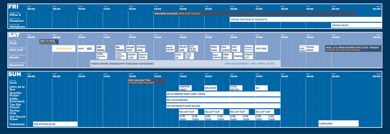 It was quite the puzzle but proud to announce the SteemFest timetable which will be available as mobile app very soon as well! A printed version including a map will be handed to you in Amsterdam.