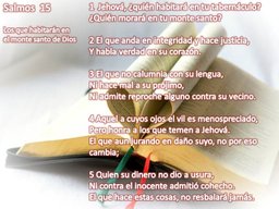 steemitcr(25)•in #spanish•3078 days agoSalmos 15 - Los que habitarán en el monte santo de DiosSalmos 15 Los que habitarán en el monte santo de Dios Salmo de David. 1 Jehová, ¿quién habitará en tu tabernáculo? ¿Quién morará en tu monte santo? 2&nbs...1steemitcr(25)•in spanish•3078 days agoSalmos 15 - Los que habitarán en el monte santo de DiosSalmos 15 Los que habitarán en el monte santo de Dios Salmo de David. 1 Jehová, ¿quién habitará en tu tabernáculo? ¿Quién morará en tu monte santo? 2&nbs...1