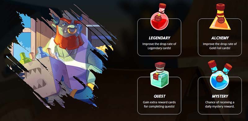 There are rumors circulating throughout the realms that users of the Mystery potion have a chance of finding an extremely rare new card with immense power which cannot be obtained any other way!