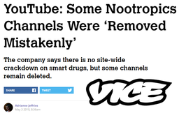 stevecronin(25)•in #health•2402 days agoYouTube Banning Health & Wellness Channels... AgainLast year, @jroseland & I went through this nonsense... YouTube Is Removing Some Nootropics Channels: At least three creators have had their channels deleted wi...3stevecronin(25)•in health•2402 days agoYouTube Banning Health & Wellness Channels... AgainLast year, @jroseland & I went through this nonsense... YouTube Is Removing Some Nootropics Channels: At least three creators have had their channels deleted wi...3
