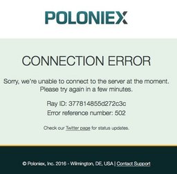 stoyeah(25)•in #crypto•3118 days agoPoloniex is downSince 10 min the big exchange Poloniex.com just closed it doors. Actually it replies with an 502 error which means bad gateway - their server is broken. http://...5stoyeah(25)•in crypto•3118 days agoPoloniex is downSince 10 min the big exchange Poloniex.com just closed it doors. Actually it replies with an 502 error which means bad gateway - their server is broken. http://...5