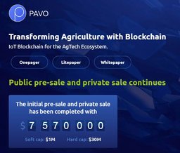 strongman101(25)•in #blockchain•2748 days agoPAVO ICO Review: Empowering the AgriTech using BlockchainOne of the most undervalued industry in the world is the Agriculture. Many people tend to forget that this industry keeps us alive and kicking. Why? because the...22$0.00strongman101(25)•in blockchain•2748 days agoPAVO ICO Review: Empowering the AgriTech using BlockchainOne of the most undervalued industry in the world is the Agriculture. Many people tend to forget that this industry keeps us alive and kicking. Why? because the...22$0.00
